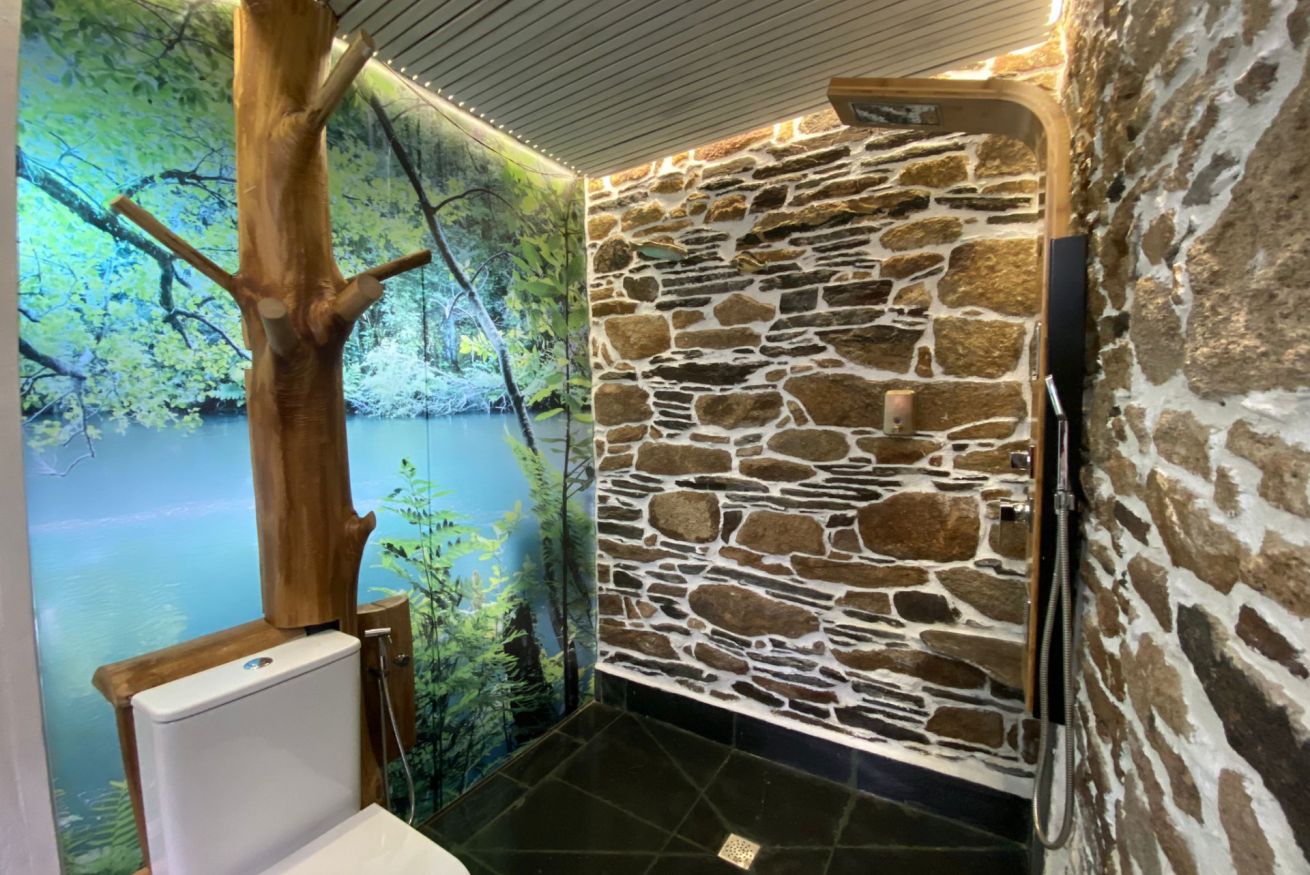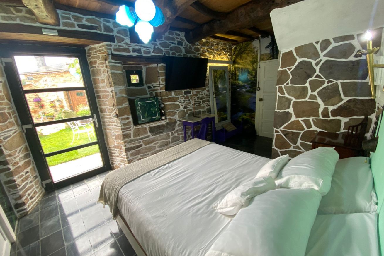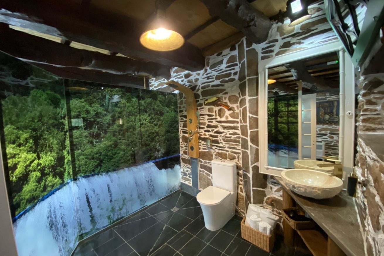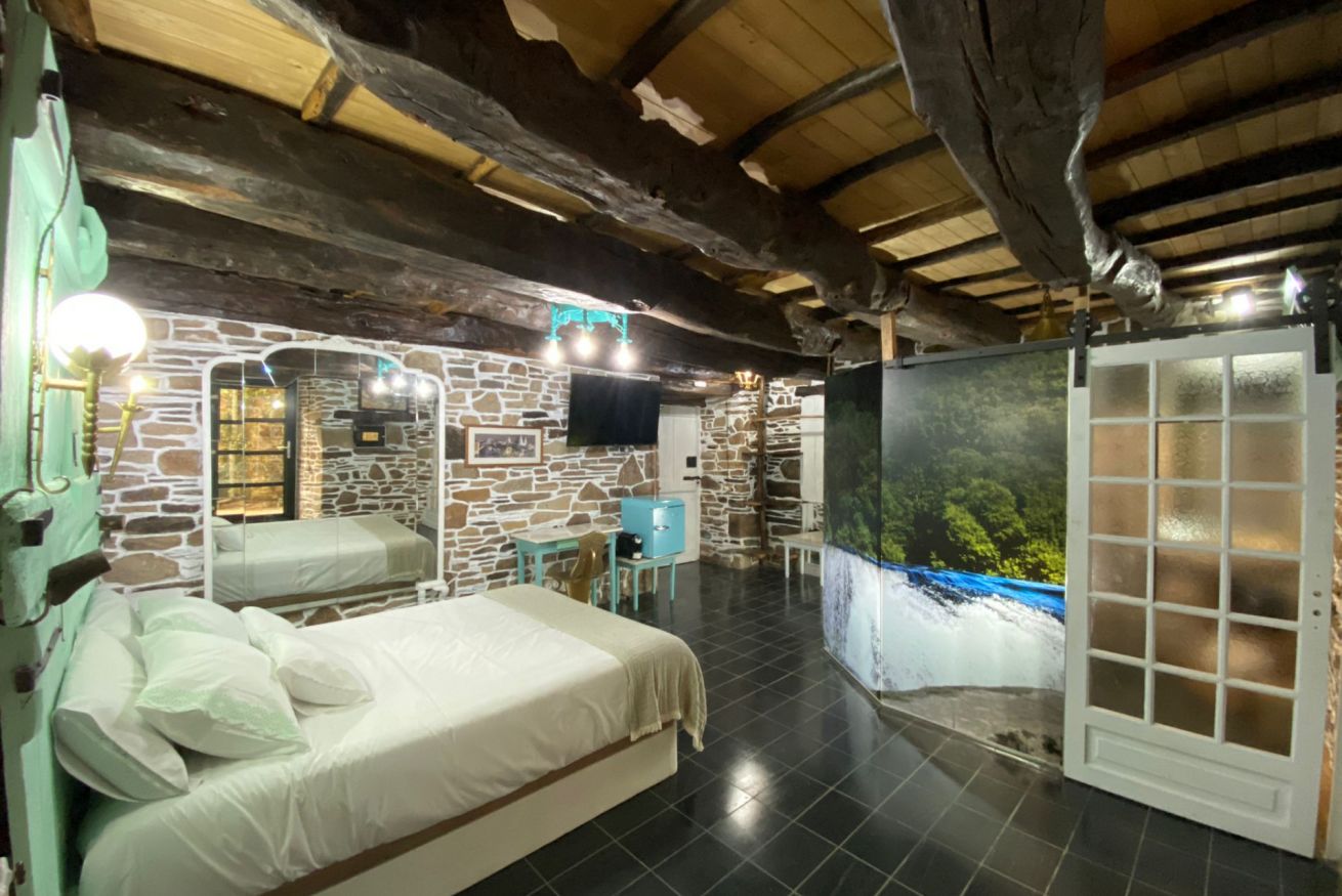 Los cabeceros son elementos etnográficos, los vestidores, artesanía pura. En el baño encontrarás madera centenaria, pizarra y lavabos de mármol. Y creerás que te estás duchando en el río o en el bosque…